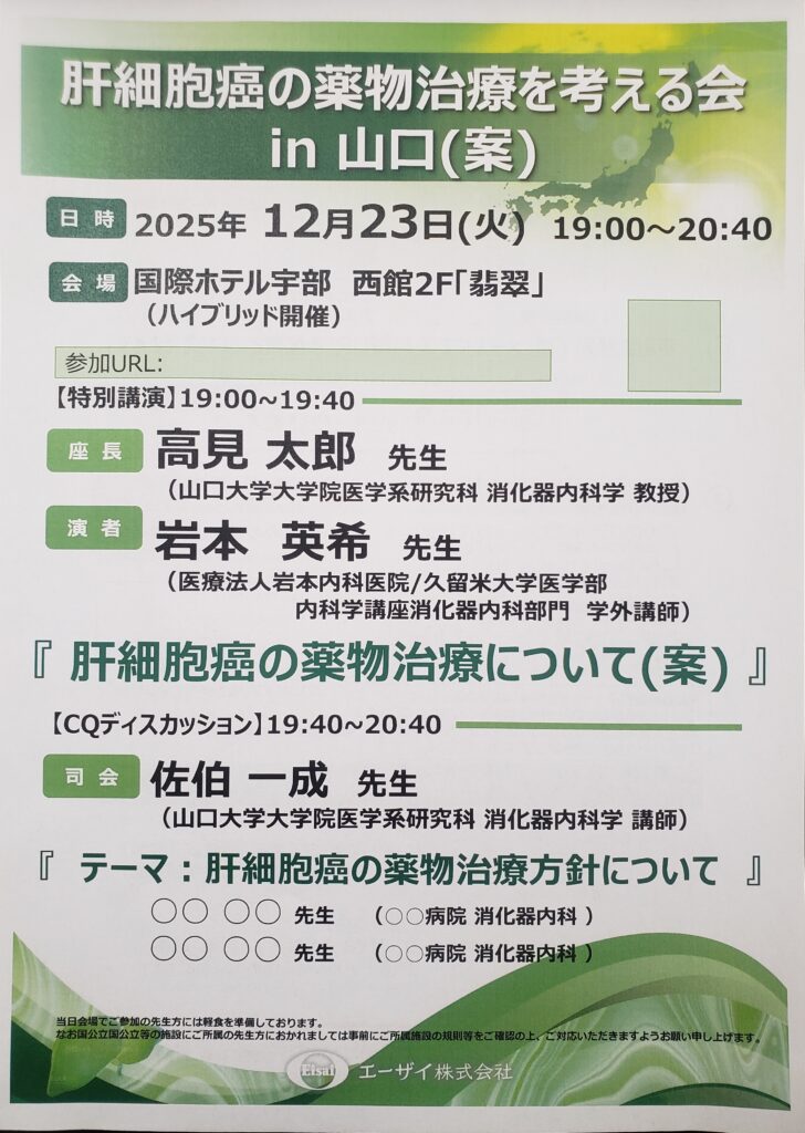 ・2025年12月23日(火) 「肝細胞癌の薬物治療を考える会」