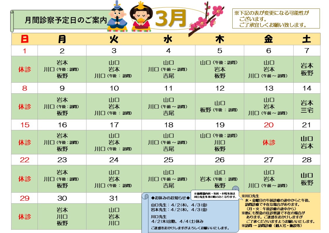 外来診療科目のご紹介